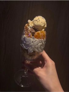 静かなラウンジで味わうような、落ち着いた大人パフェ。