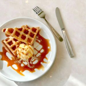 香り豊かなシーシャとともに味わうのは、当店の王道【塩キャラメルクロッフル】