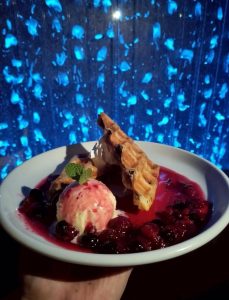 仕上げに軽やかなホイップとバニラアイスを添えて、見た目も華やかなデザートです