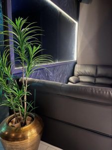 With the lights dimmed, the interior is quiet and comfortable for conversation and alone time.