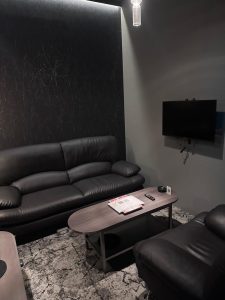 落ち着いた照明とシックな内装が印象的なシーシャ空間。