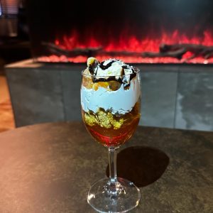 上品な香りと濃厚なショコラの甘さを楽しめるデザート、オランジュショコラをご用意しています。柑橘の爽やかさが加わることで、重すぎず最後まで飽きずに味わえる一品です。シーシャとの相性も良く、甘さと香りのバランスを楽しむ時間を過ごせます。