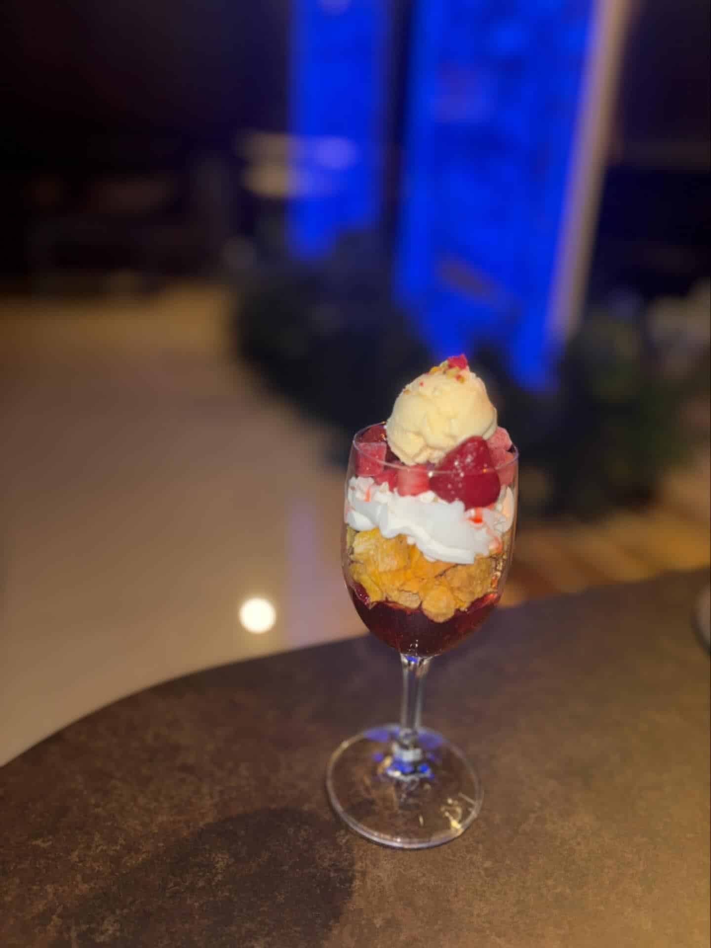 甘酸っぱいベリーを贅沢に使用したパルフェは、見た目も味わいも満足感のある一品です。フレッシュな果実の酸味とクリームのコクが重なり、シーシャの合間のデザートとしても相性の良い仕上がりになっています。ゆったりとした時間の中で、特別感のある甘さをお楽しみください。