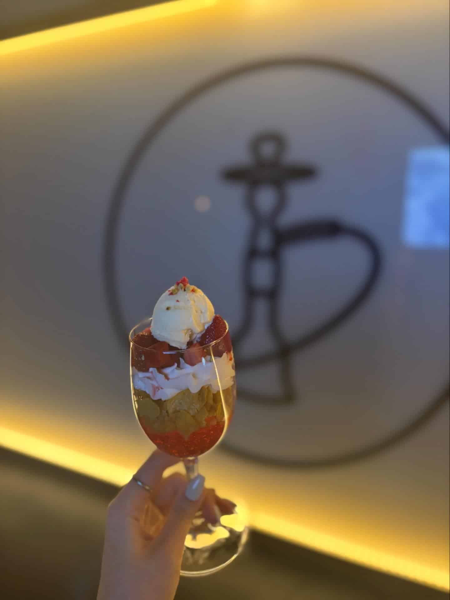 甘酸っぱいベリーを贅沢に使用したパルフェは、見た目も味わいも満足感のある一品です。フレッシュな果実の酸味とクリームのコクが重なり、シーシャの合間のデザートとしても相性の良い仕上がりになっています。ゆったりとした時間の中で、特別感のある甘さをお楽しみください。