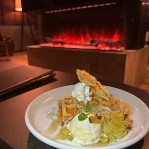 外はサクッと、中はしっとりと仕上げた季節のクロッフルに、スイートポテトのやさしい甘さを合わせました。香ばしい生地と、ほっくりとしたさつまいもの風味が相性抜群で、シーシャと一緒に楽しむデザートとして人気の一品です。落ち着いた空間で、季節の味わいをゆっくりお楽しみください。