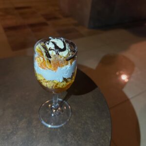 爽やかなオレンジの酸味と、ほろ苦いチョコレートのコクが重なり合う大人向けデザート。甘すぎず、最後までバランスよく楽しめる味わいに仕上げています。ゆったりとした時間の中で、シーシャとともに落ち着いて味わえる一品です。