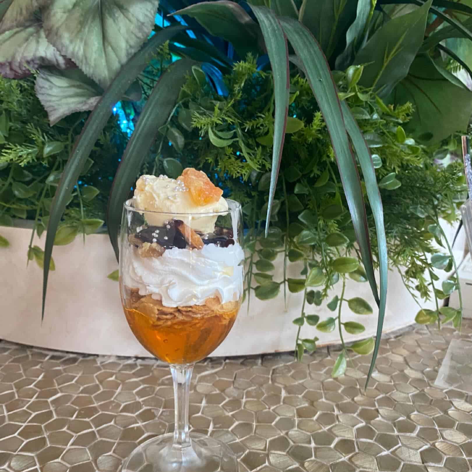 ドライオレンジと濃厚アイス,チョコレートをグラスにぎゅっと閉じ込めた一品。