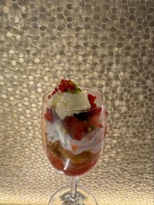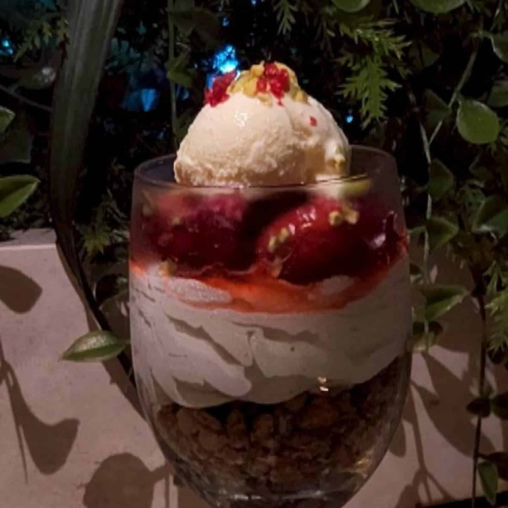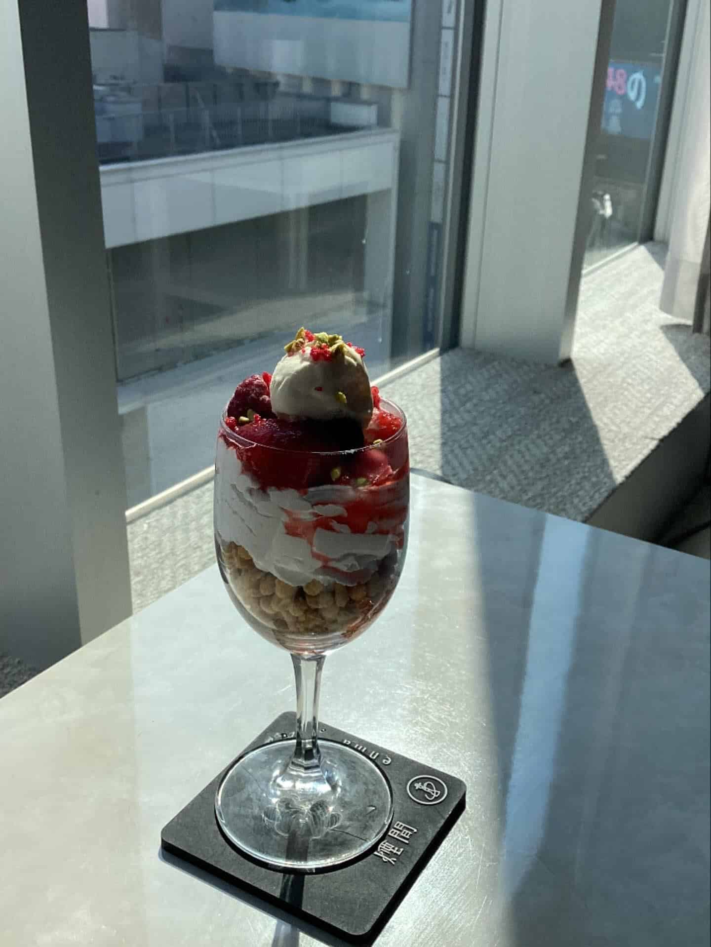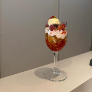旬のベリーと濃厚アイスをグラスにぎゅっと閉じ込めた一品。