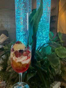 こちらは「メロンクリームソーダ」と、煙間の看板メニュー「季節のフルーツティー」でございます🍒🍹