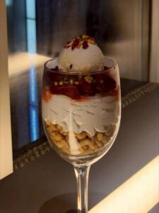 旬のベリーと濃厚アイスをグラスにぎゅっと閉じ込めた一品。