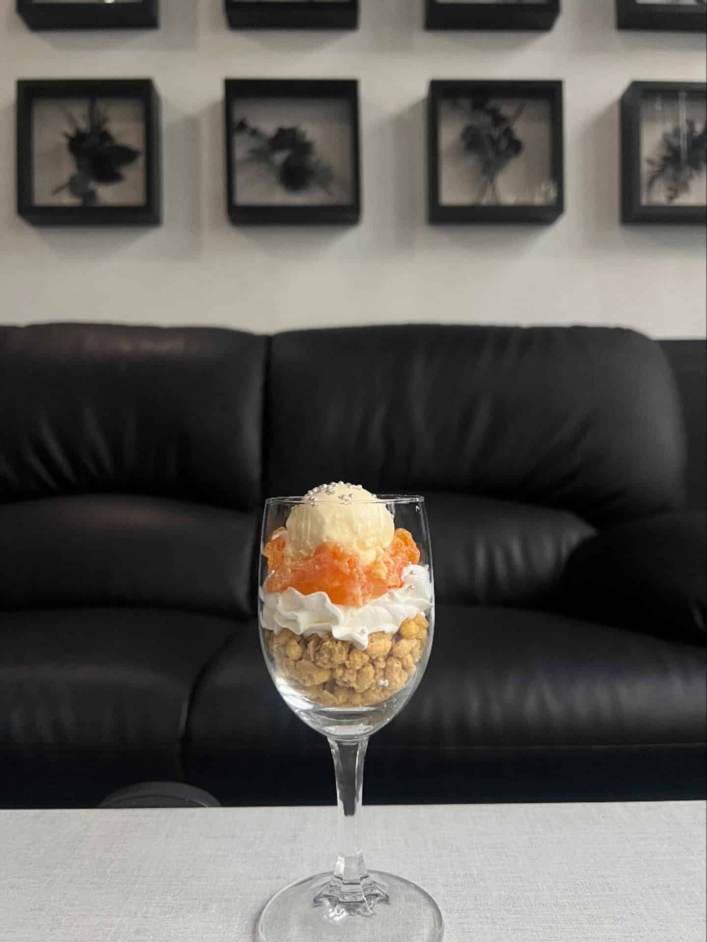 当店のデザートのご紹介。ドライオレンジの爽やかさと、濃厚なチョコレートが織りなす、大人のデザート「オランジュショコラ」。シーシャのお供にいかがでしょうか。ぜひご賞味ください。