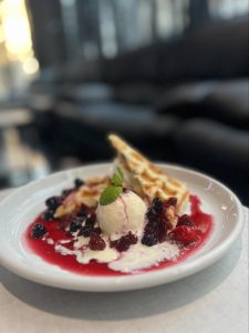 「季節のクロッフル」のご紹介です。チョコ入りのワッフルにベリーソースが絶妙にマッチした絶品スイーツ。ぜひ一度味わってみてください。