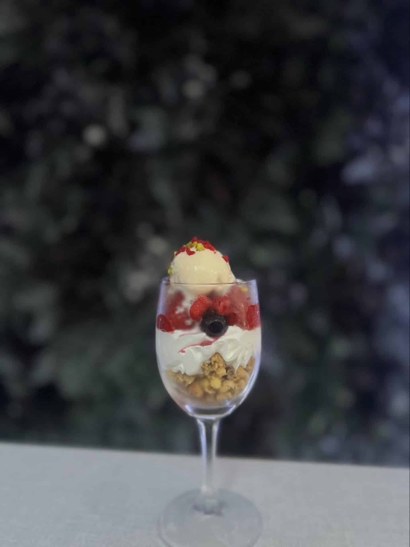 ごろごろベリーとアイスクリームの、見た目も味も贅沢な一品です。