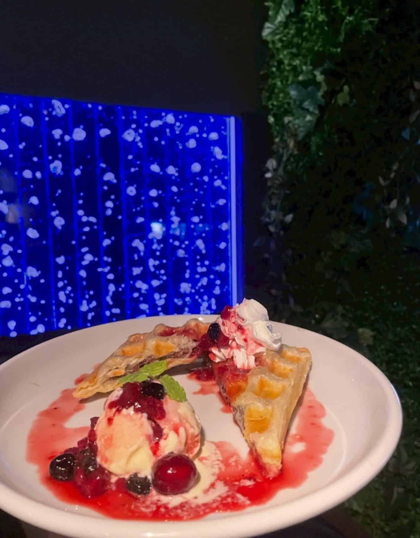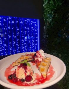 熱々のワッフルを冷たいアイスクリームにつけてぜひお召し上がりください!