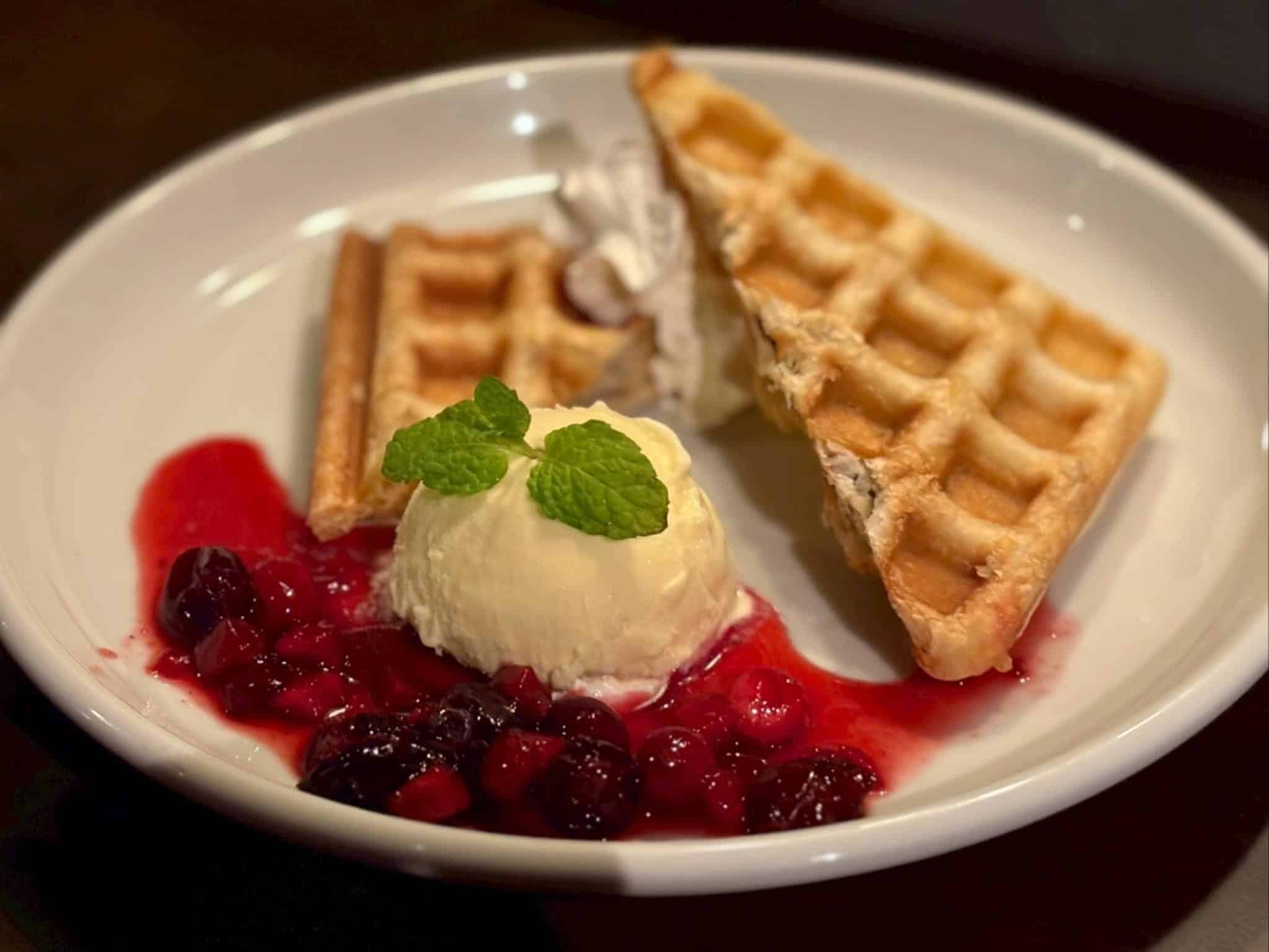 サクサクのクロッフルに、甘酸っぱいベリーソースがよく合います。