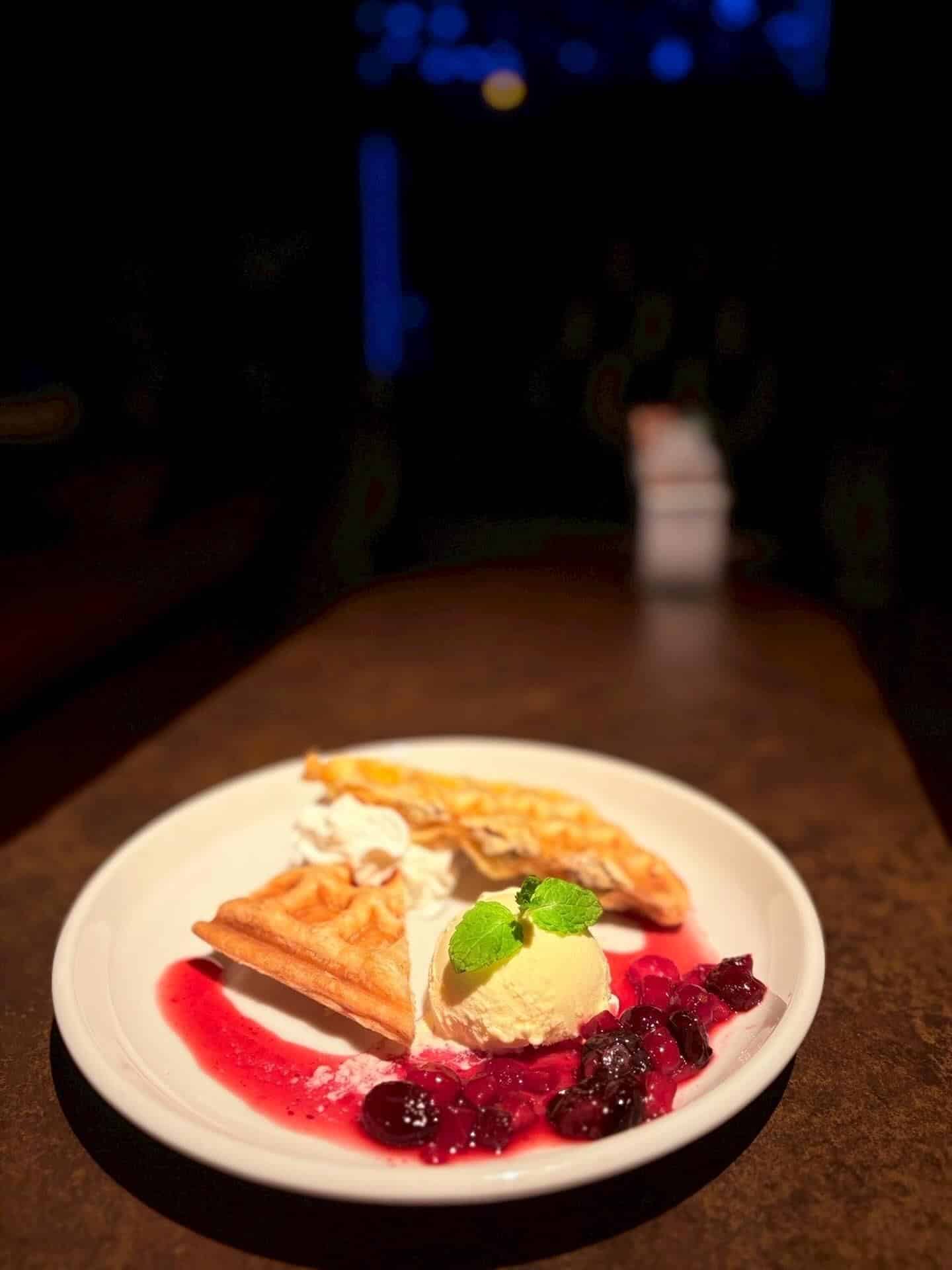 クロッフルのバター香る風味に華やかなベリーの酸味を