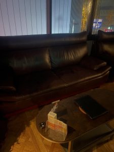 ソファー席で、