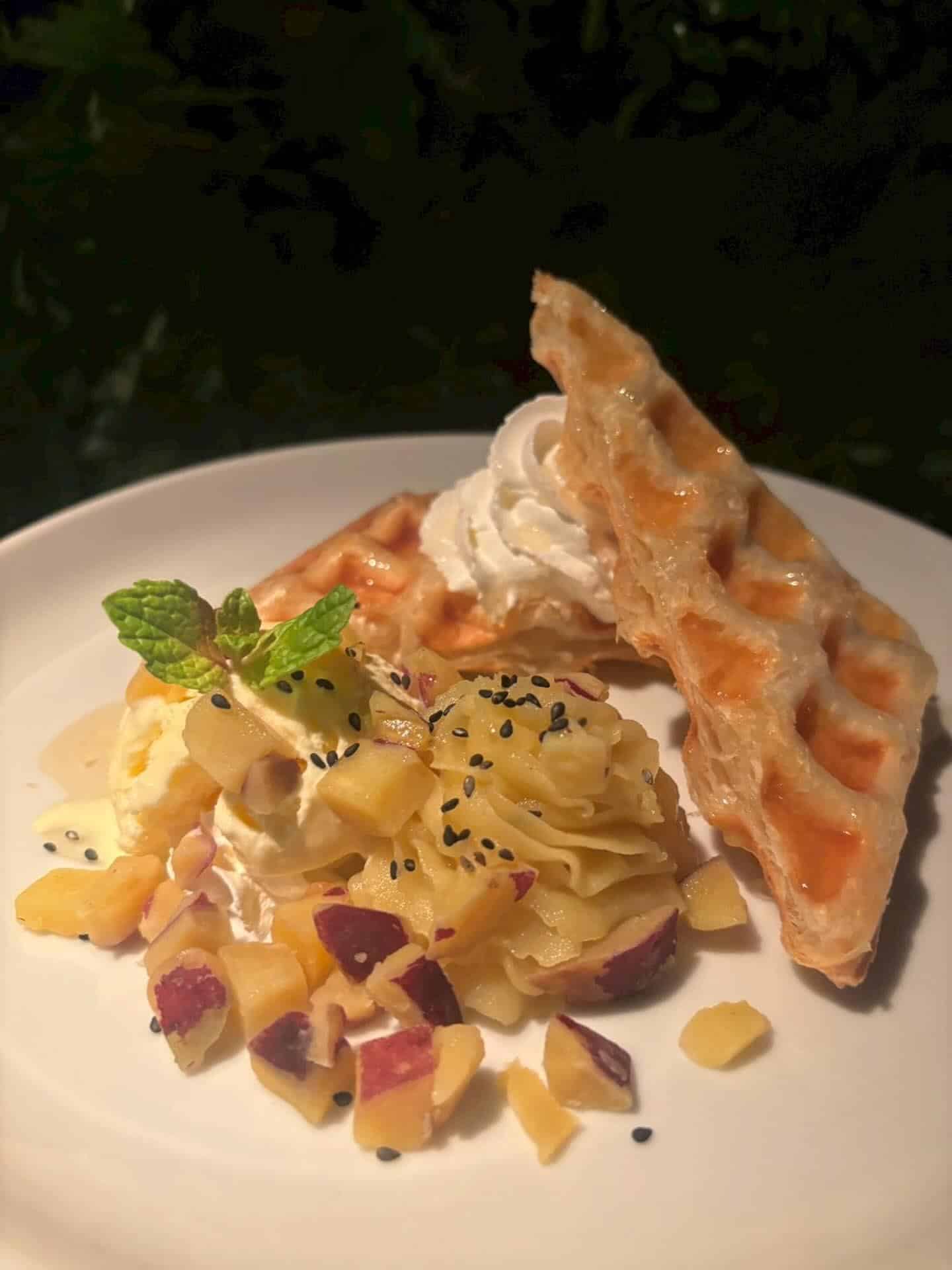 さつまいもをふんだんに使用した季節のクロッフルは