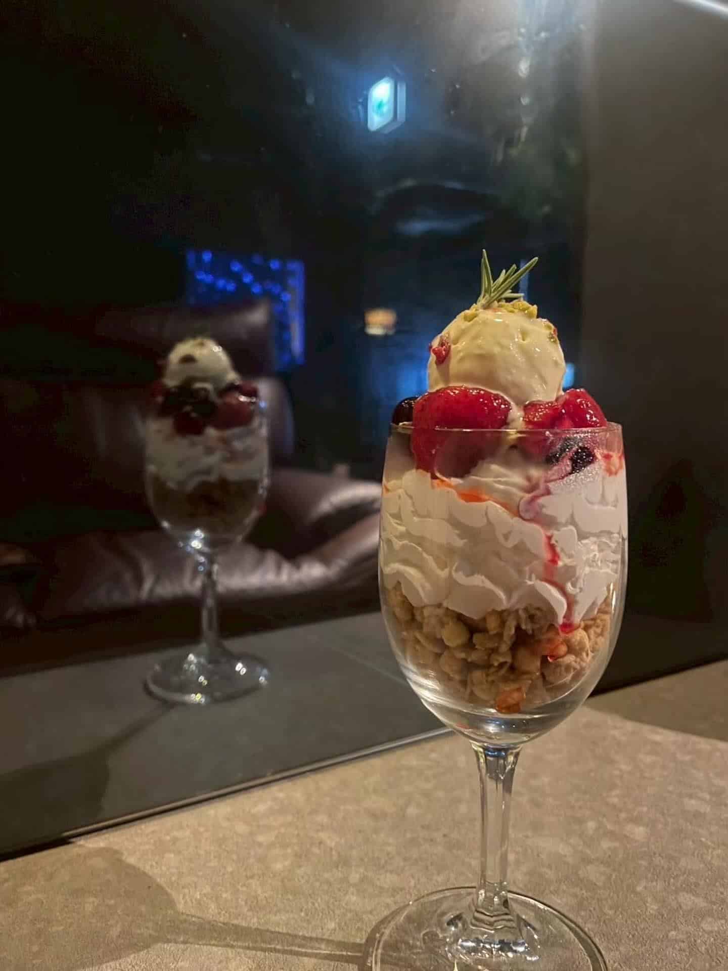 なめらかなクリームと甘酸っぱいベリーを重ねたパフェです。